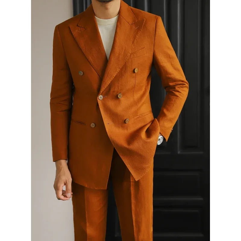 اشتر بدلات كتان للرجال مكونة من قطعتين، طقم سترة مزدوجة الصدر ذات ياقة مدببة، بدلة سهرة ضيقة لحفلات الزفاف والشاطئ من منتجات الملابس والاكسسوارات من مصنع الصين مباشرة عبر الرابط