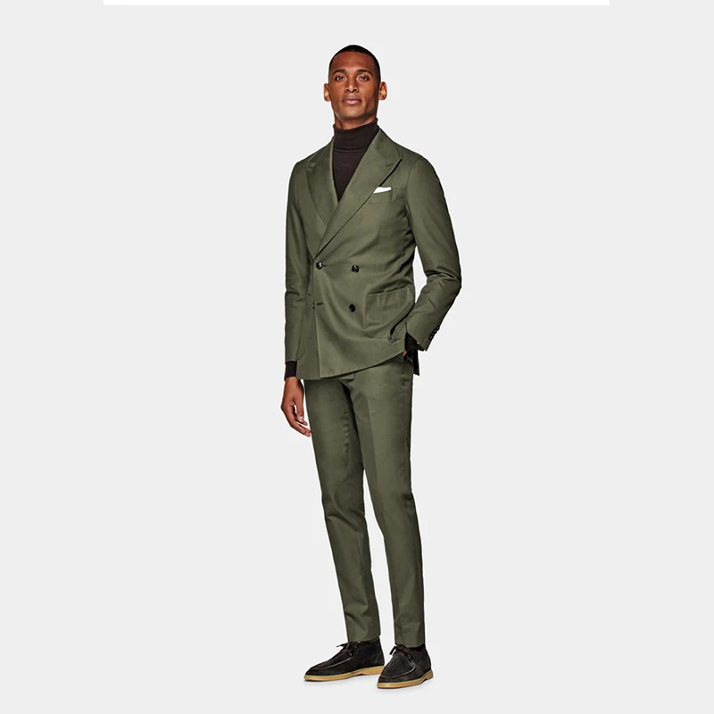 اشتر بدلتان رجاليتان كاجوال من القطن باللون الأخضر المتوسط مزدوجتي الصدر. من منتجات الملابس والاكسسوارات من مصنع الصين مباشرة عبر الرابط