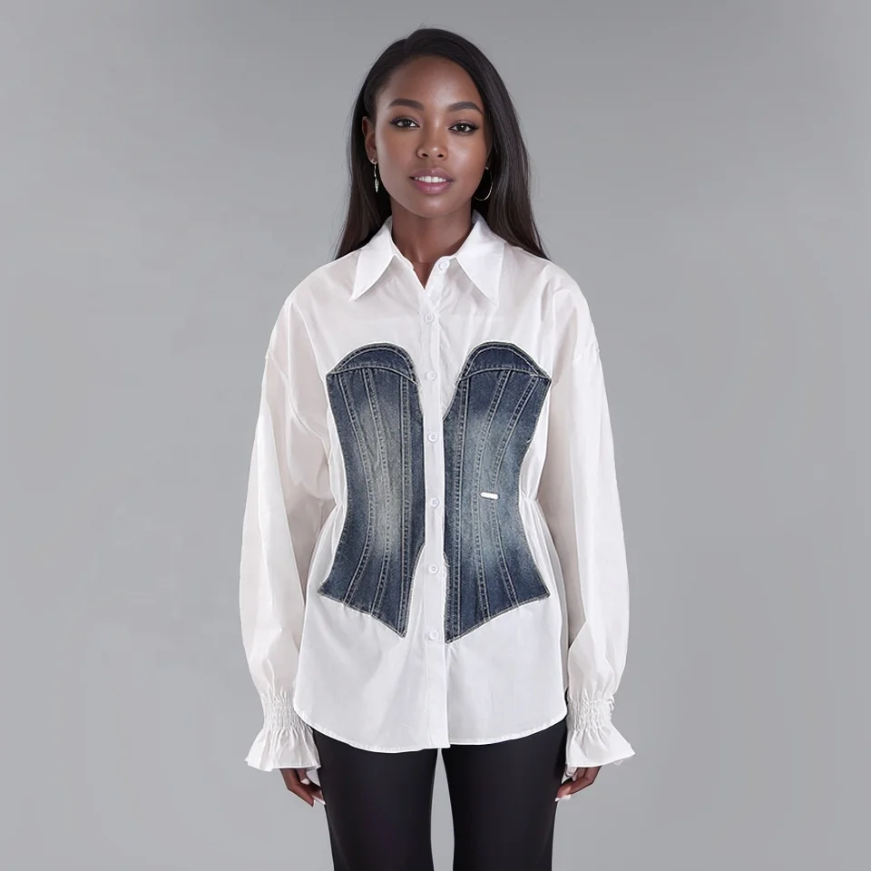 اشتر بلوزات نسائية من OUDINA بألوان متباينة، بلوزات جينز متصلة، بلوزات وقمصان نسائية أنيقة ونحيفة للنساء من منتجات الملابس والاكسسوارات من مصنع الصين مباشرة عبر الرابط