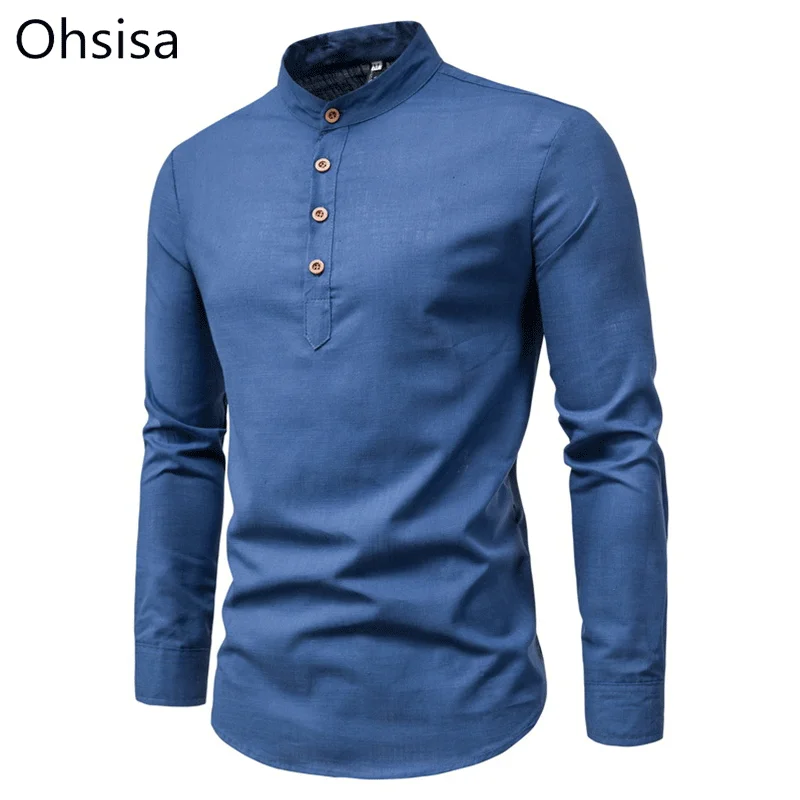 اشتر بلوزة عمل رجالية جديدة من القطن والكتان بألوان نقية وأزرار وياقة ماندرين وأكمام طويلة وقميص كاجوال من منتجات الملابس والاكسسوارات من مصنع الصين مباشرة عبر الرابط