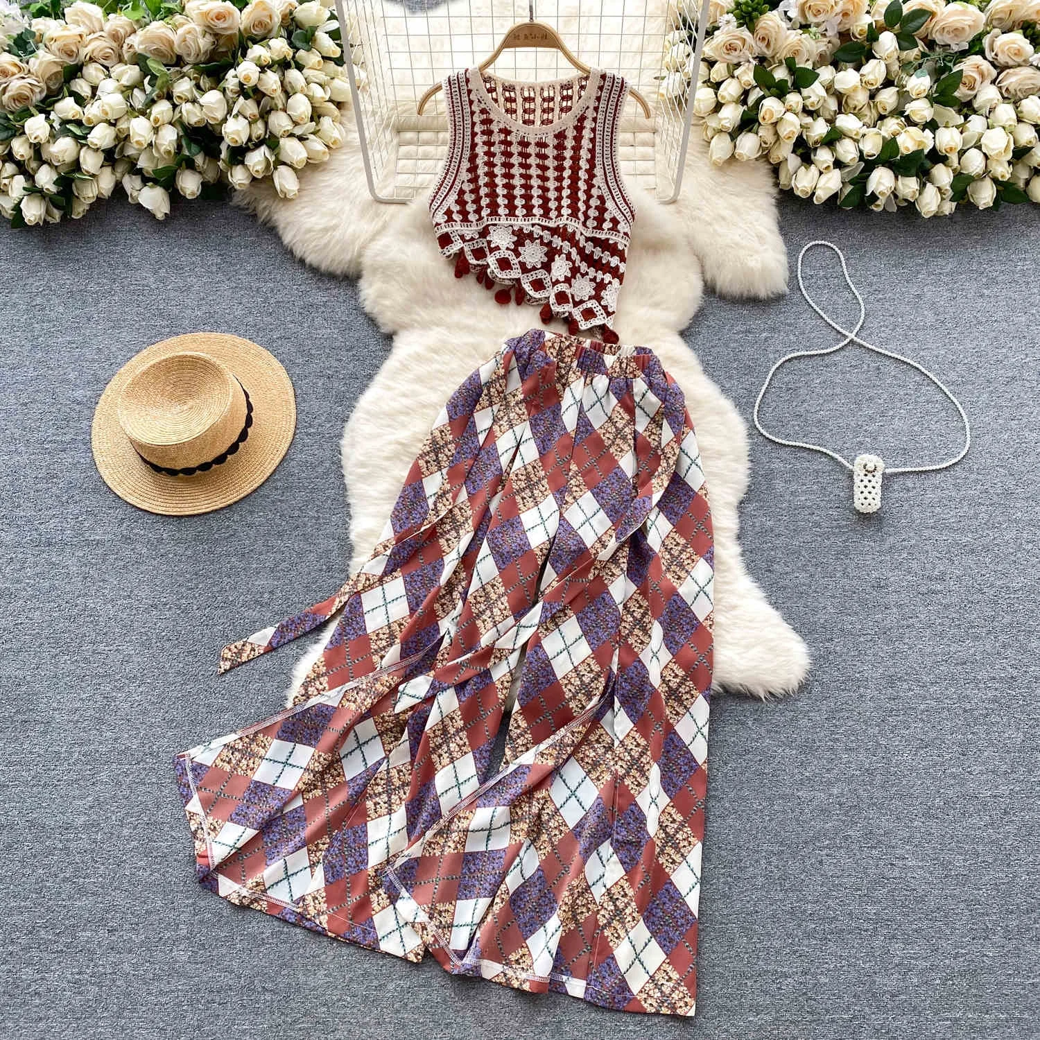 اشتر بلوزة قصيرة محبوكة بتصميم أنيق من قطعتين من Boho Getaway مع بنطلون واسع الساق من Vintage من منتجات الملابس والاكسسوارات من مصنع الصين مباشرة عبر الرابط