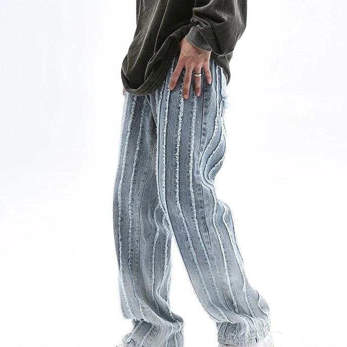 اشتر بنطلون جينز فضفاض للرجال بتصميم حافة خام من موسيقى الهيب هوب الأوروبية والأمريكية من منتجات الملابس والاكسسوارات من مصنع الصين مباشرة عبر الرابط