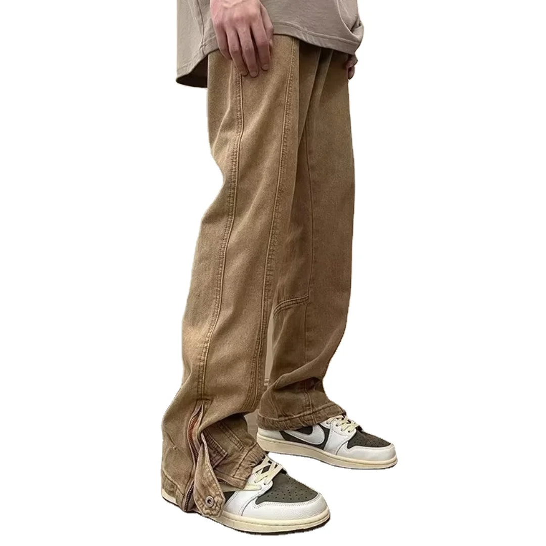 اشتر بنطلون جينز كاجوال أنيق بتصميم مستقيم مغسول لعام 2024 للرجال بسحاب صغير من منتجات الملابس والاكسسوارات من مصنع الصين مباشرة عبر الرابط
