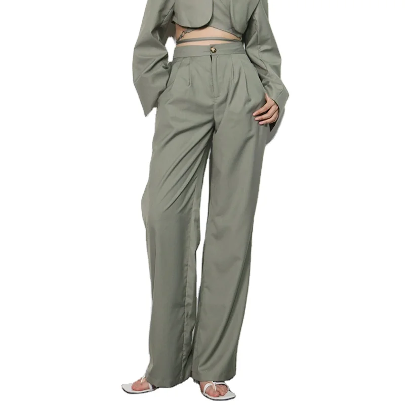 اشتر بنطلون كاجوال عصري واسع الساق للبنات بخصر مرتفع وبنطلون مستقيم للنساء من منتجات الملابس والاكسسوارات من مصنع الصين مباشرة عبر الرابط
