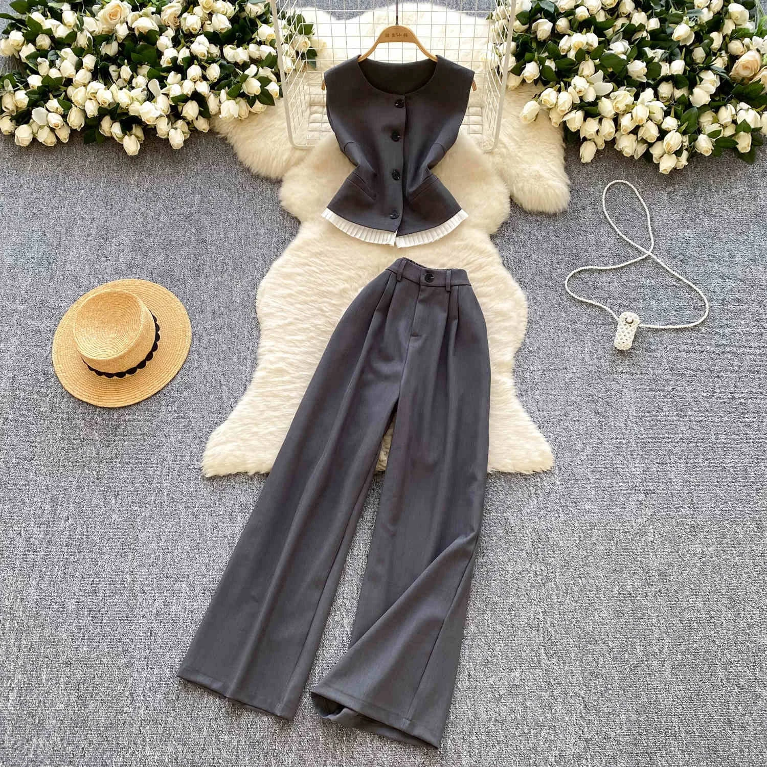 اشتر بنطلون نسائي كاجوال بخصر مرتفع وساق عالية من قطعتين بتصميم جديد من منتجات الملابس والاكسسوارات من مصنع الصين مباشرة عبر الرابط