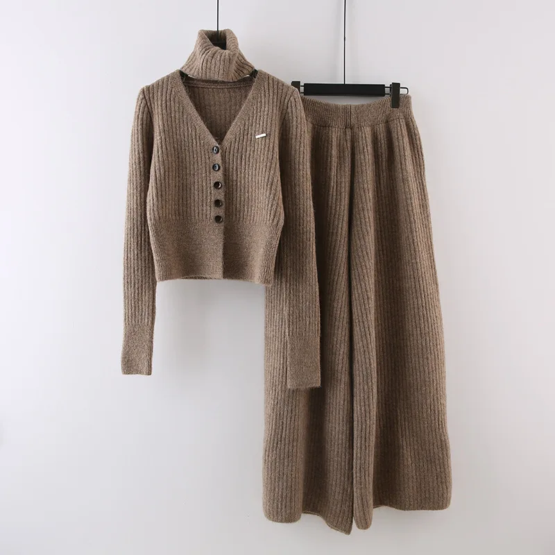 اشتر بوتيك بالجملة 2024 خريف جديد عصري سترة محبوكة على شكل حرف V كارديجان بنطال واسع الساق مجموعة نسائية من منتجات الملابس والاكسسوارات من مصنع الصين مباشرة عبر الرابط