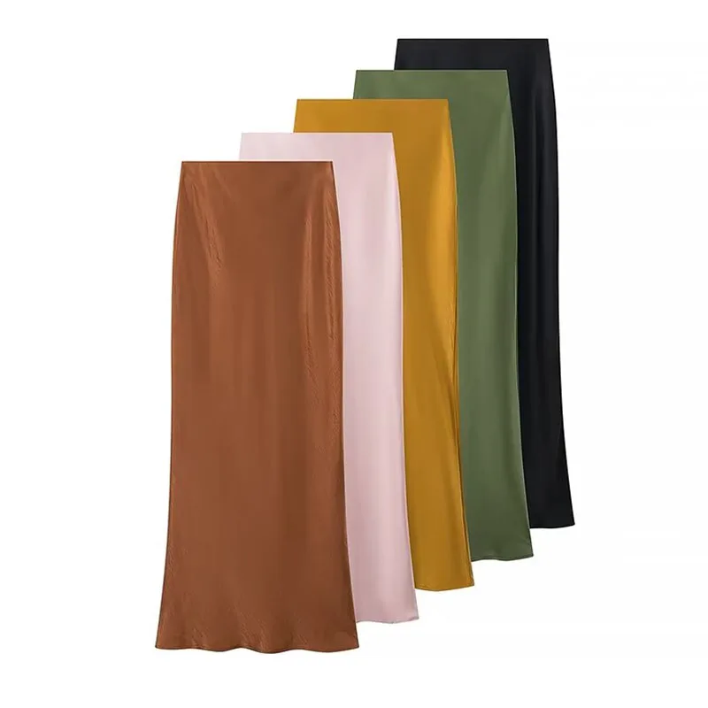 اشتر تنورة ميدي من الحرير الساتان للنساء من ZATRHMBM لعام 2024، تنورة عالية الخصر بلون سادة قديم من منتجات الملابس والاكسسوارات من مصنع الصين مباشرة عبر الرابط