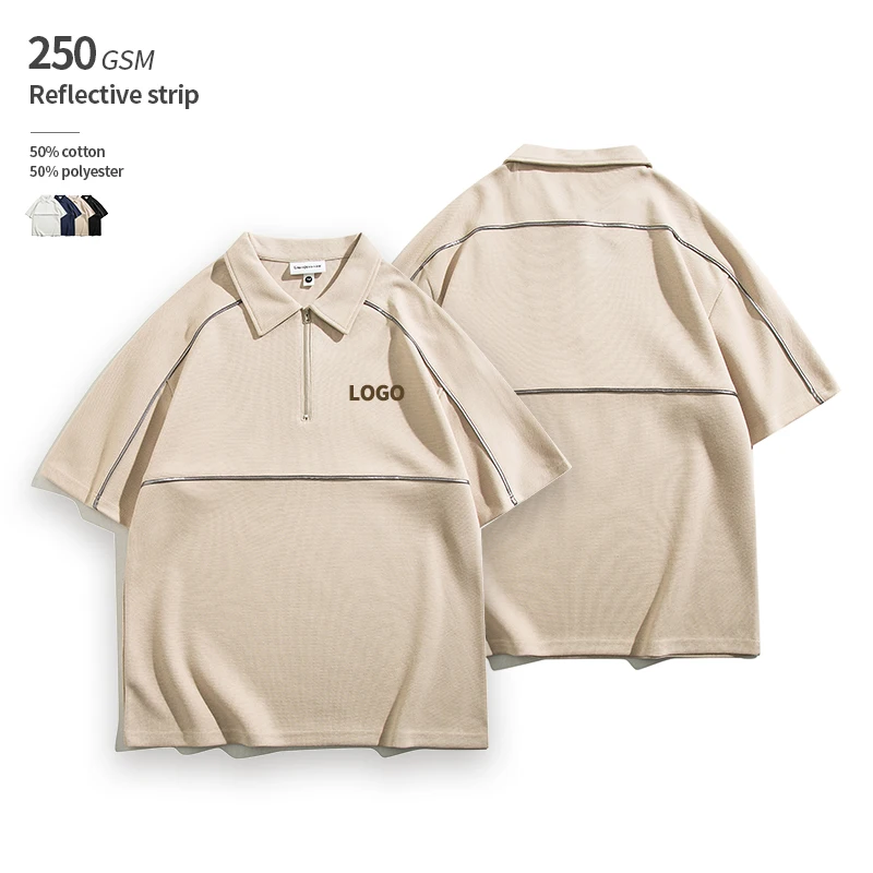 اشتر تي شيرت بولو مخصص OEM بشرائط عاكسة بوزن 250 جرامًا للمتر المربع من القطن بسحاب ثقيل الوزن 50% قطن 50% بوليستر من منتجات الملابس والاكسسوارات من مصنع الصين مباشرة عبر الرابط