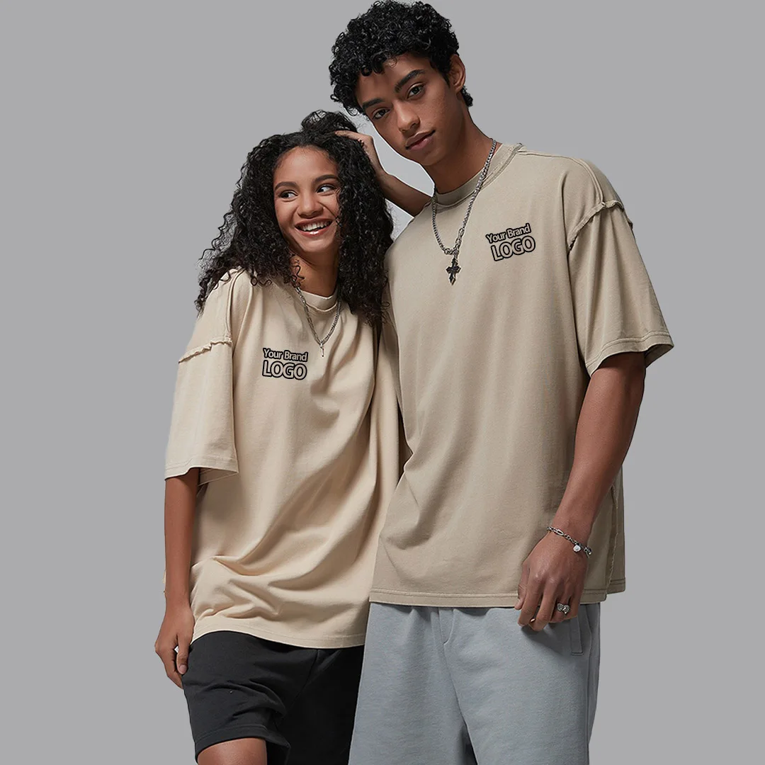 You are currently viewing تي شيرت رجالي نسائي كبير الحجم بشعار مخصص 250 جرام 100% قطن عتيق، تي شيرت بالين برقبة دائرية وأكمام قصيرة للزوجين للجنسين
