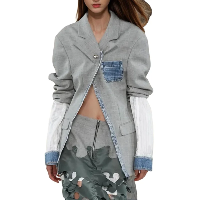 اشتر جاكيتات جينز أنيقة بأكمام طويلة وجيوب مرقعة وياقة مدببة للنساء من منتجات الملابس والاكسسوارات من مصنع الصين مباشرة عبر الرابط