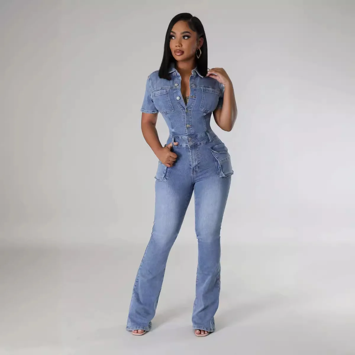 اشتر جمبسوت جينز مطاطي مغسول من OUDINA للبيع بالجملة في الصيف، جمبسوت جينز رومبير كارغو للنساء من منتجات الملابس والاكسسوارات من مصنع الصين مباشرة عبر الرابط