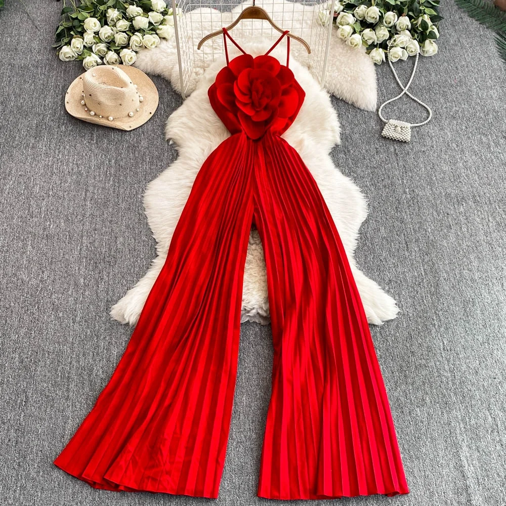 اشتر جمبسوت نسائي صيفي خصر مرتفع وقصة ضيقة وساق واسعة من مجموعة زهور ثلاثية الأبعاد لقضاء إجازة على الشاطئ من منتجات الملابس والاكسسوارات من مصنع الصين مباشرة عبر الرابط