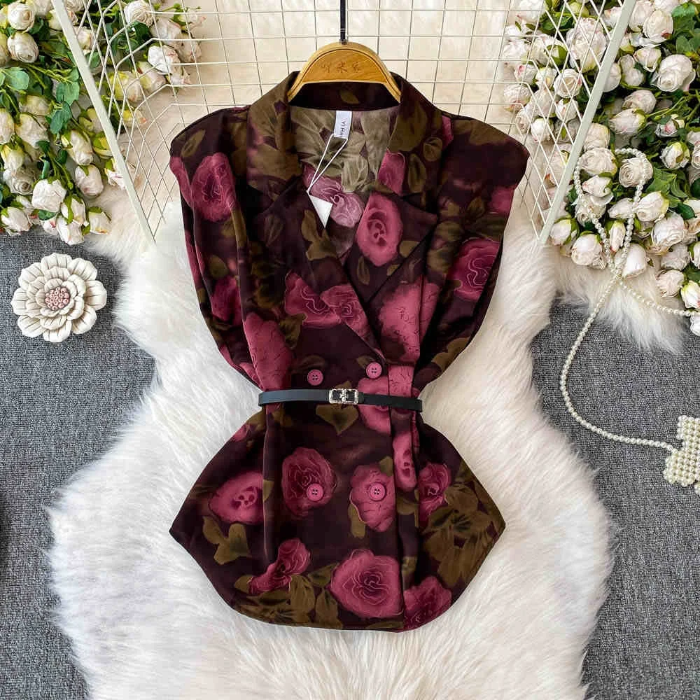 اشتر سترة بدون أكمام بياقة بدلة مطبوعة باللون الأرجواني للنساء بتصميم صيفي قميص علوي مزدوج الصدر من منتجات الملابس والاكسسوارات من مصنع الصين مباشرة عبر الرابط