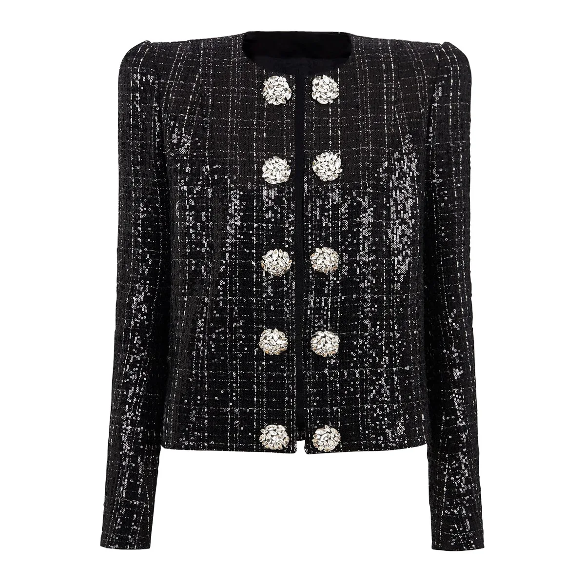 اشتر سترة نسائية أنيقة من الترتر بتصميم أنيق لفصل الربيع والخريف، رقبة دائرية، أكمام طويلة، حجر الراين، صدر مزدوج من منتجات الملابس والاكسسوارات من مصنع الصين مباشرة عبر الرابط