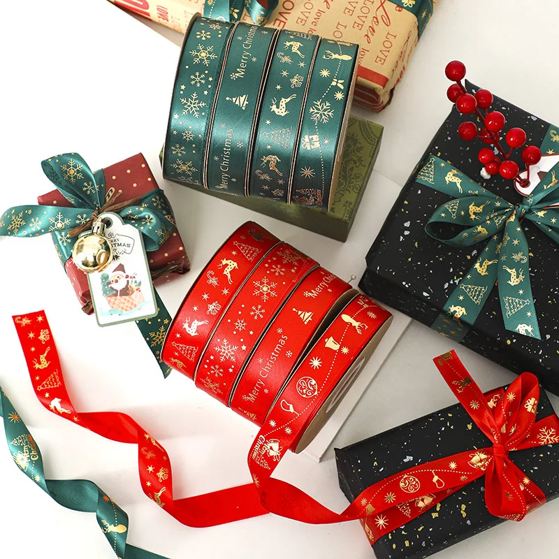اشتر شريط ساتان منقوش بشعار ذهبي مخصص وشريط بوليستر مطبوع لتغليف هدايا عيد الميلاد من منتجات الملابس والاكسسوارات من مصنع الصين مباشرة عبر الرابط