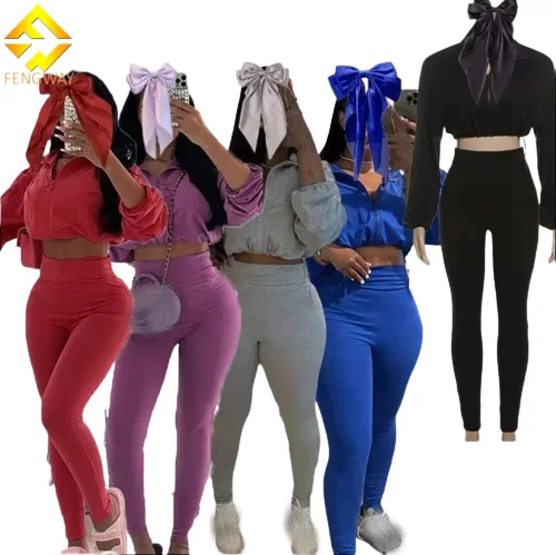 اشتر طقم سويت شيرت نسائي لخريف 2024 مع أقواس وبدلات رياضية بأكمام طويلة وشعار مخصص للنساء من منتجات الملابس والاكسسوارات من مصنع الصين مباشرة عبر الرابط