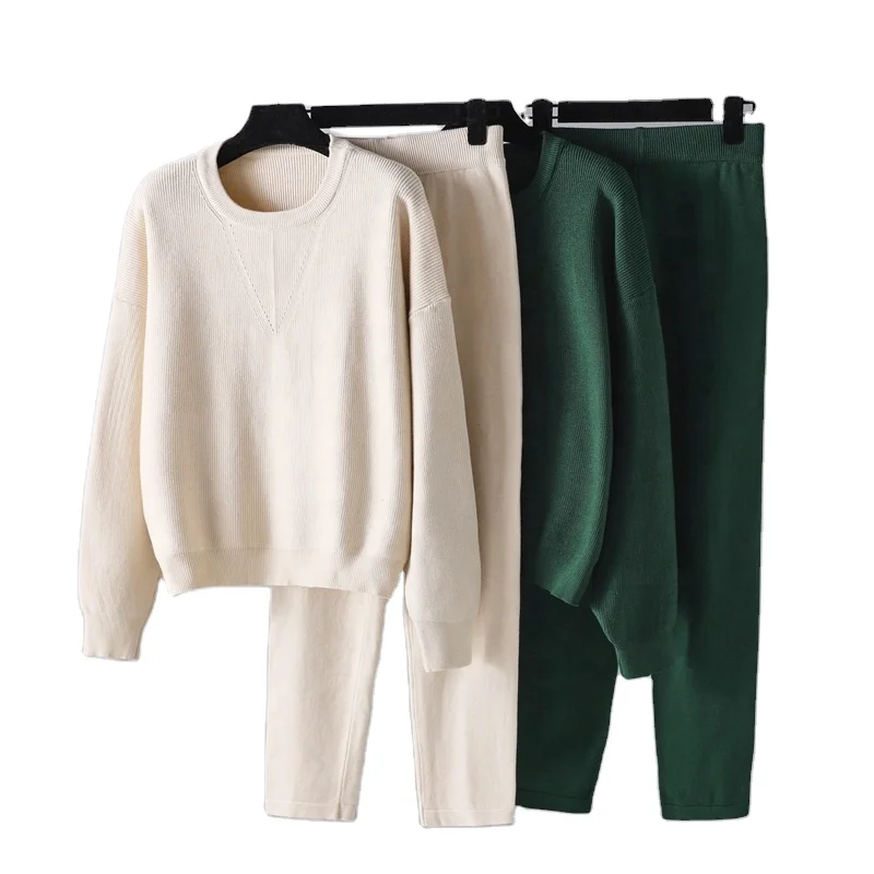 اشتر طقم كاجوال للسيدات لفصل الخريف والشتاء طقم جديد من السترات الفضفاضة والبنطلونات المكونة من قطعتين طقم حياكة بلون سادة للنساء من منتجات الملابس والاكسسوارات من مصنع الصين مباشرة عبر الرابط