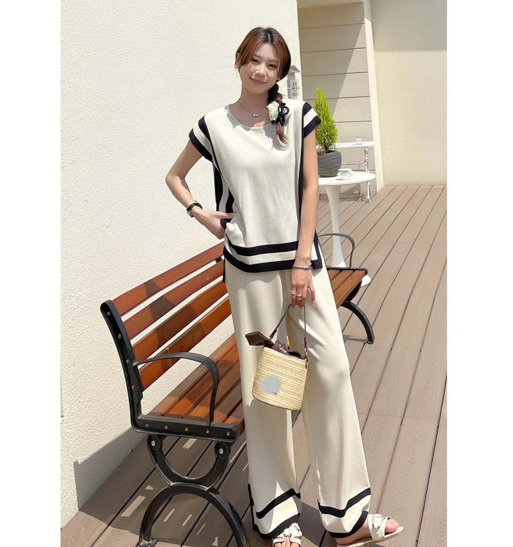 اشتر طقم مكون من قطعتين من سترة بأكمام شال فضفاضة وخصر مرتفع وبنطلون واسع الساق من تصميم جديد لعام 2024 من منتجات الملابس والاكسسوارات من مصنع الصين مباشرة عبر الرابط