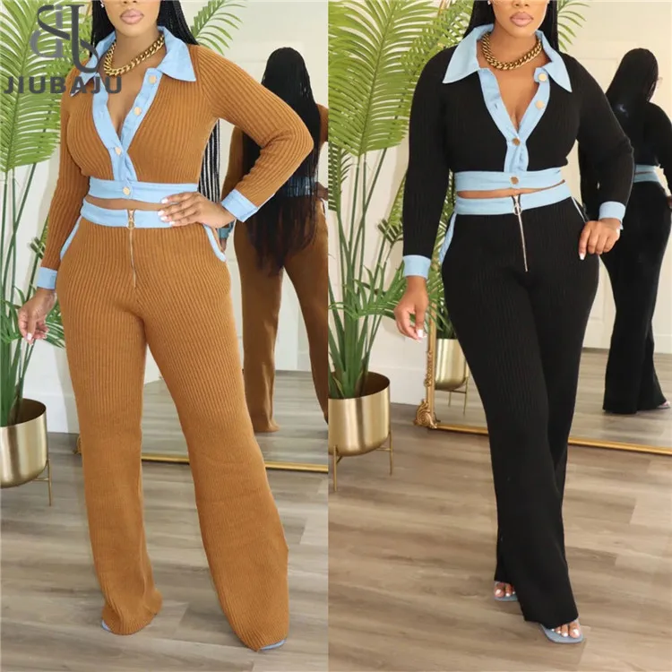 اشتر طقم مكون من قطعتين من نسيج الضلع للنساء، أزرار ياقة أنيقة، قميص قصير بأكمام طويلة، وسراويل ضيقة بخصر مرتفع، بدلات من منتجات الملابس والاكسسوارات من مصنع الصين مباشرة عبر الرابط