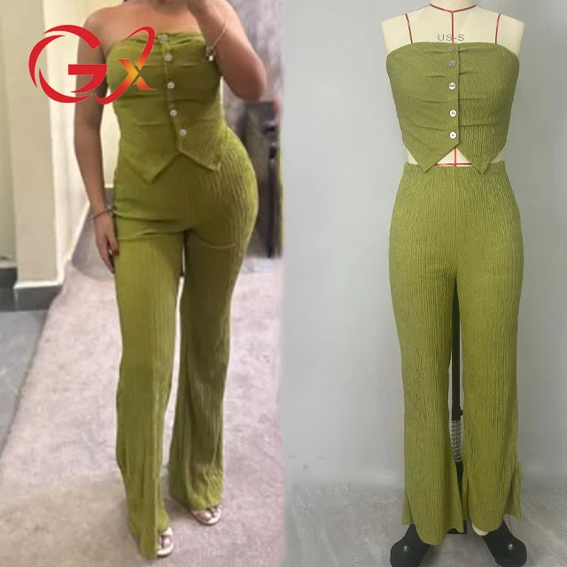 اشتر طقم مكون من قطعتين من GX4087 من ملابس نسائية أنيقة عصرية صيفية للشارع وأزرار وسراويل من منتجات الملابس والاكسسوارات من مصنع الصين مباشرة عبر الرابط