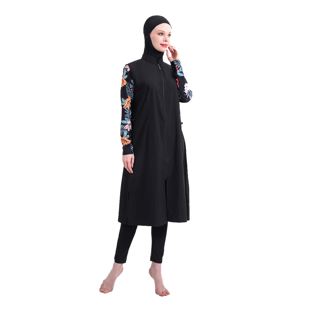 اشتر طقم ملابس سباحة فضفاض من ثلاث قطع من جنوب شرق آسيا، ملابس سباحة مطبوعة بأكمام طويلة وسحاب، ملابس سباحة كبيرة الحجم مع حجاب من منتجات الملابس والاكسسوارات من مصنع الصين مباشرة عبر الرابط