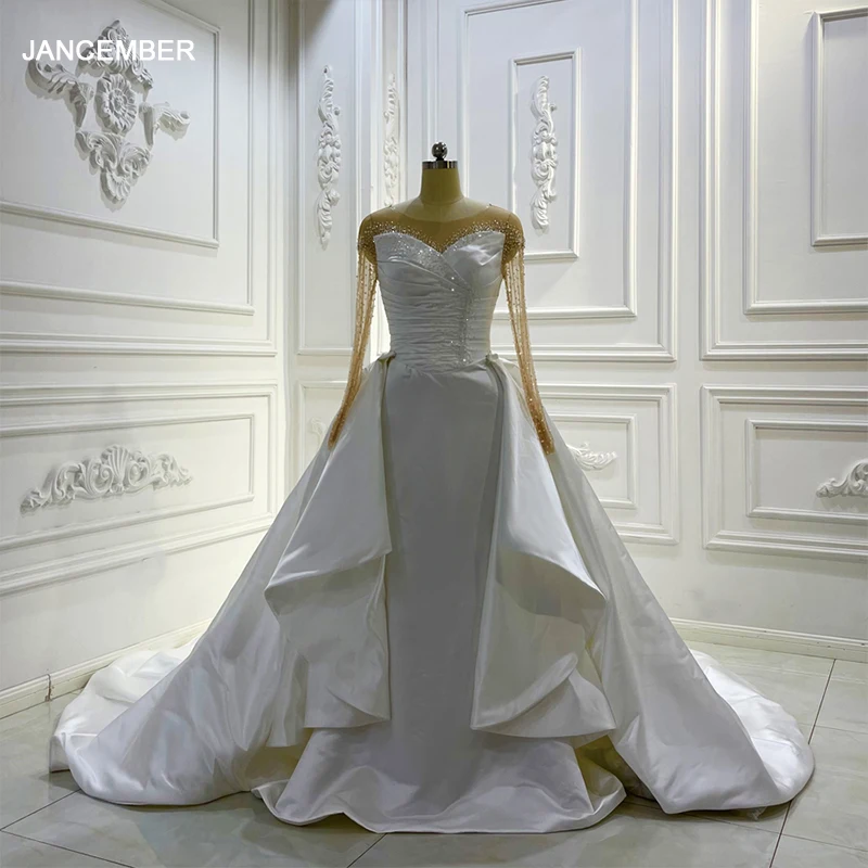 اشتر فساتين زفاف أنيقة من اللؤلؤ الحلو بدون أكمام 2 في 1 فستان زفاف حورية البحر الساتان Lscj59 من منتجات الملابس والاكسسوارات من مصنع الصين مباشرة عبر الرابط