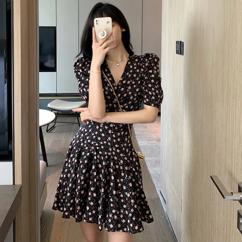 اشتر فساتين نسائية صيفية بأكمام قصيرة وطبعة زهور ورقبة على شكل حرف V للبيع بالجملة من منتجات الملابس والاكسسوارات من مصنع الصين مباشرة عبر الرابط