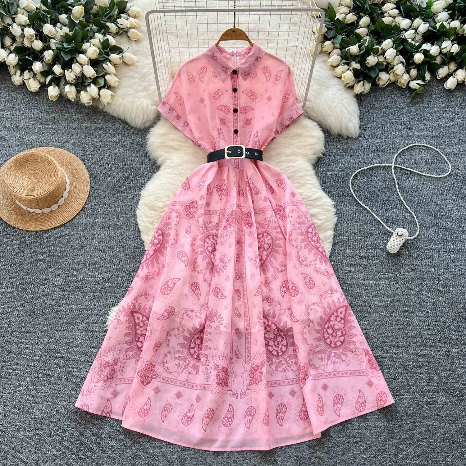 اشتر فستان صيفي جديد مطبوع بأسلوب ريترو للنساء، فساتين أنيقة وعصرية بياقة قابلة للطي وحزام بأزرار واحدة من منتجات الملابس والاكسسوارات من مصنع الصين مباشرة عبر الرابط