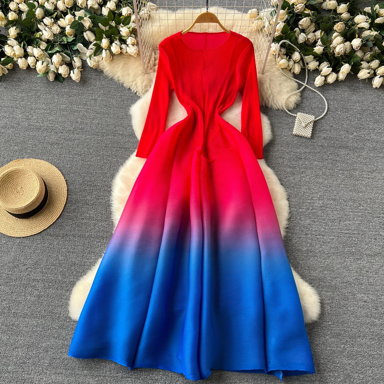 اشتر فستان صيفي مطوي تنورة كاجوال طويلة بلون متدرج كشكش متتالي فستان أنيق لحفلات المساء من منتجات الملابس والاكسسوارات من مصنع الصين مباشرة عبر الرابط