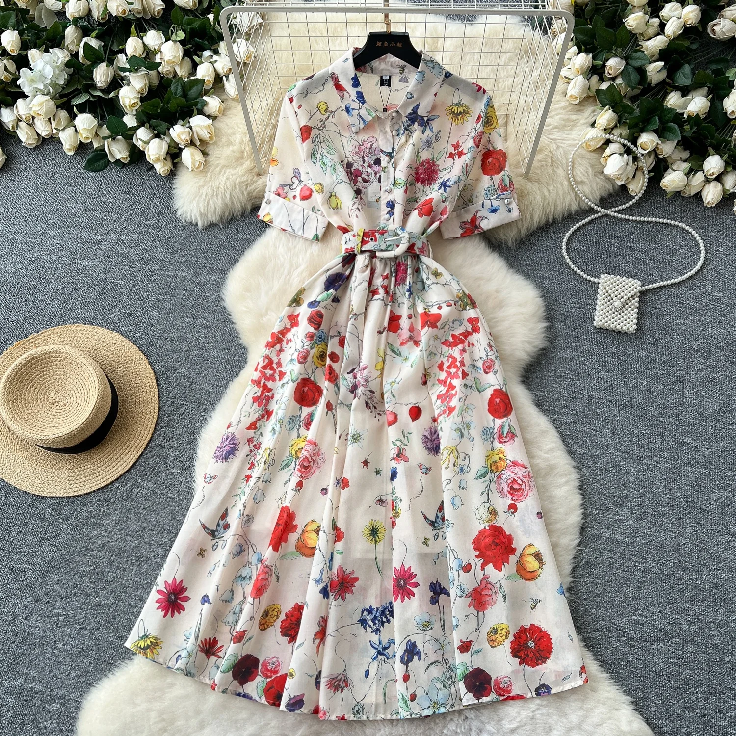 اشتر فستان كاجوال بأكمام قصيرة وصدر واحد وطبعة ريترو على شكل حرف A من منتجات الملابس والاكسسوارات من مصنع الصين مباشرة عبر الرابط