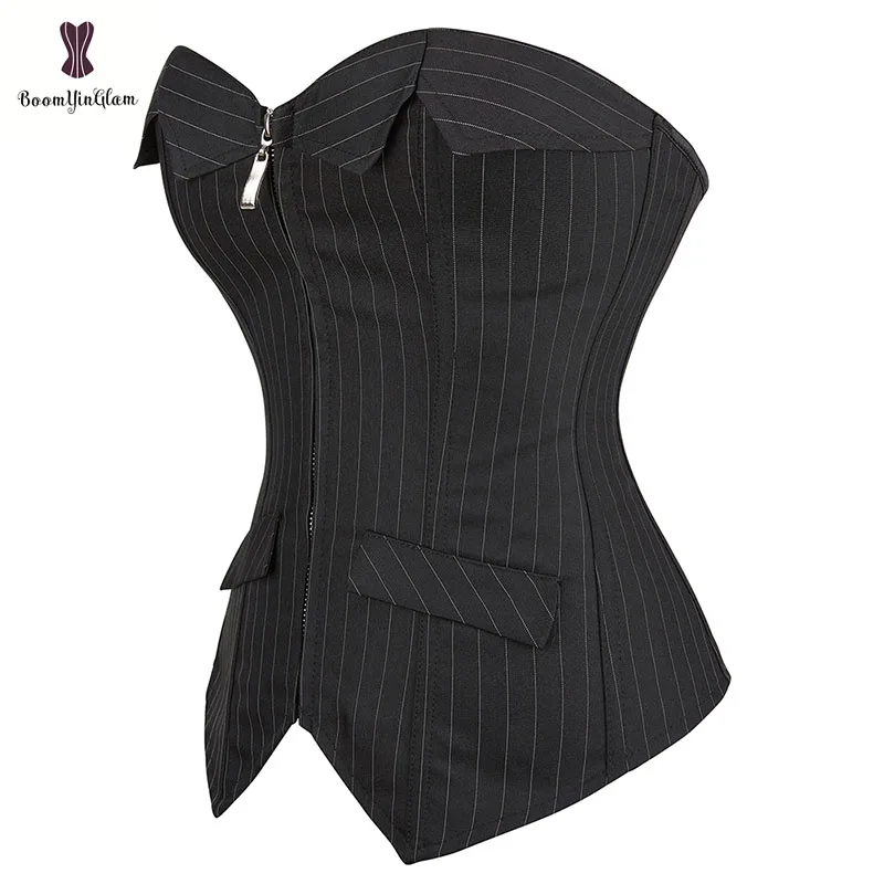 اشتر فستان كورسيه نسائي مخطط بسحاب أمامي وسحاب من OL Skinny Bustier Crop Top باللونين الأسود والأبيض مع حبل من منتجات الملابس والاكسسوارات من مصنع الصين مباشرة عبر الرابط