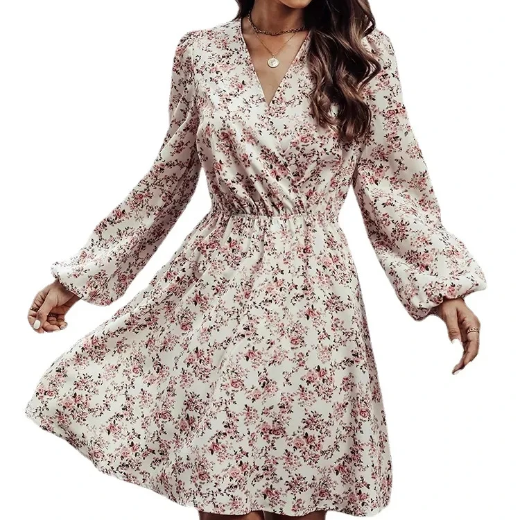 اشتر فستان نسائي بأكمام طويلة وأكمام طويلة وخصر متوسط ورقبة على شكل حرف V من مصنع 2023 بالجملة فستان نسائي قصير كاجوال من منتجات الملابس والاكسسوارات من مصنع الصين مباشرة عبر الرابط
