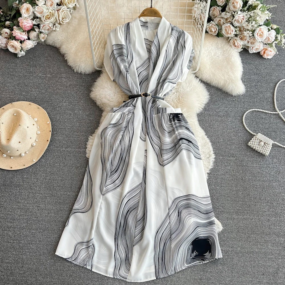 اشتر فستان نسائي جديد بأكمام قصيرة ورقبة على شكل حرف V وطول متوسط من مجموعة بوتيك بالجملة لصيف 2024 من منتجات الملابس والاكسسوارات من مصنع الصين مباشرة عبر الرابط