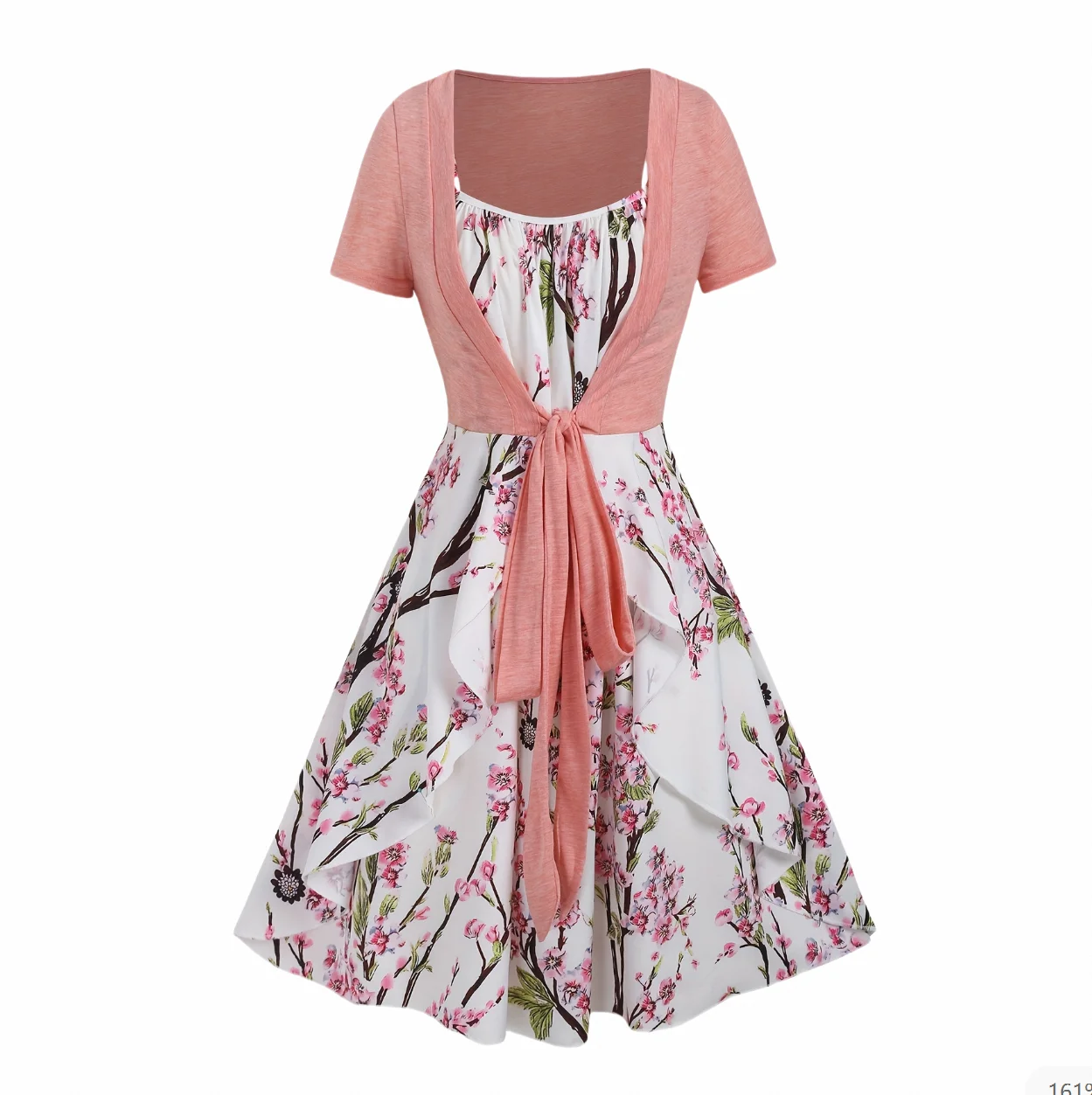 You are currently viewing فستان نسائي رومانسي بطبعة زهور فرنسية بأكمام قصيرة وضمادة على شكل حرف A فستان متوسط الطول قابل للتخصيص