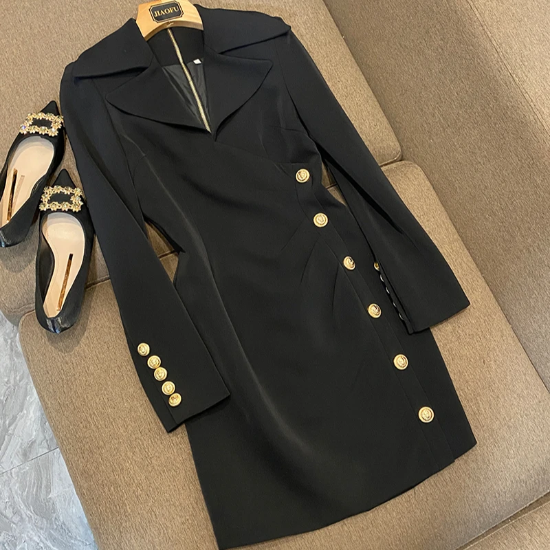 اشتر فستان نسائي سادة بتصميم عصري من القماش الأساسي بخصر ملفوف وأكمام طويلة وصدر واحد من منتجات الملابس والاكسسوارات من مصنع الصين مباشرة عبر الرابط