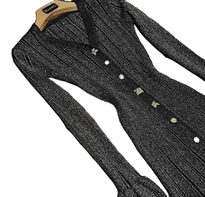 اشتر فستان نسائي طويل محبوك بفتحة رقبة على شكل حرف V وأكمام طويلة وصدر واحد من مجموعة 2024 للسيدات من منتجات الملابس والاكسسوارات من مصنع الصين مباشرة عبر الرابط