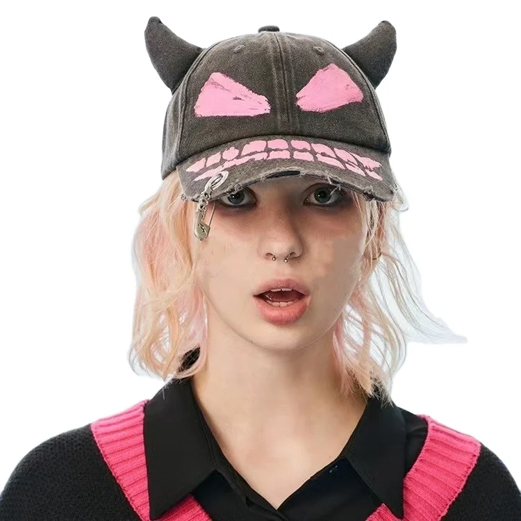 اشتر قبعة أب من القطن المغسول والمطلي يدويًا مع ثقوب، قبعة بيسبول شيطانية، قبعة سائق شاحنة بولو قابلة للتعديل بنمط للجنسين من منتجات الملابس والاكسسوارات من مصنع الصين مباشرة عبر الرابط