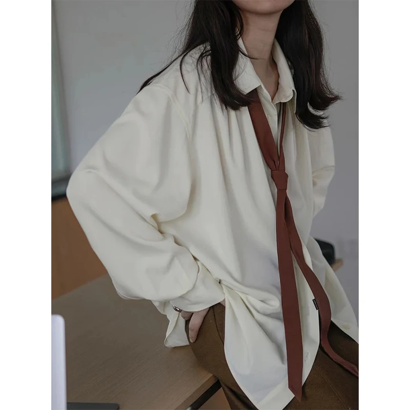 اشتر قمصان خريفية فضفاضة للنساء على الطراز الكوري، قمصان كبيرة الحجم برباط سادة، بلوزة، قميص خريف 2024 بسيط بأكمام طويلة وأزرار من منتجات الملابس والاكسسوارات من مصنع الصين مباشرة عبر الرابط