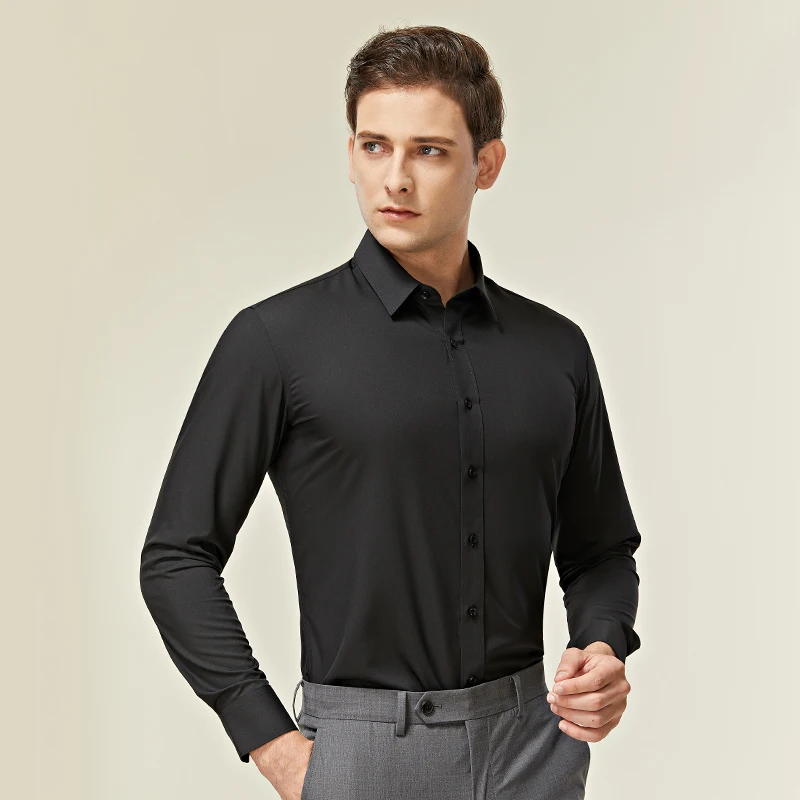 اشتر قمصان رجالية قطنية عصرية سوداء بأزرار وياقة مزدوجة وأكمام طويلة وكاملة من منتجات الملابس والاكسسوارات من مصنع الصين مباشرة عبر الرابط