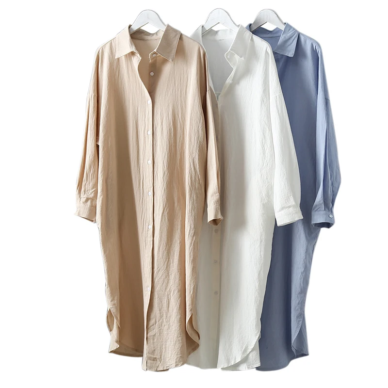 اشتر قميص نسائي طويل 2022 من القطن والكتان بلون سادة، كارديجان بأكمام طويلة وأزرار، واقي من الشمس كوري فضفاض، قمصان نسائية كاجوال من منتجات الملابس والاكسسوارات من مصنع الصين مباشرة عبر الرابط