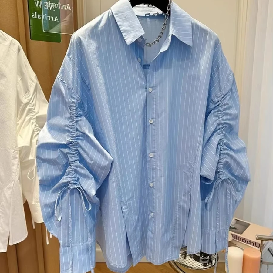 اشتر قميص نسائي منقسم بأكمام فضفاضة وحاشية برباط بتصميم جديد لربيع 2024 من منتجات الملابس والاكسسوارات من مصنع الصين مباشرة عبر الرابط