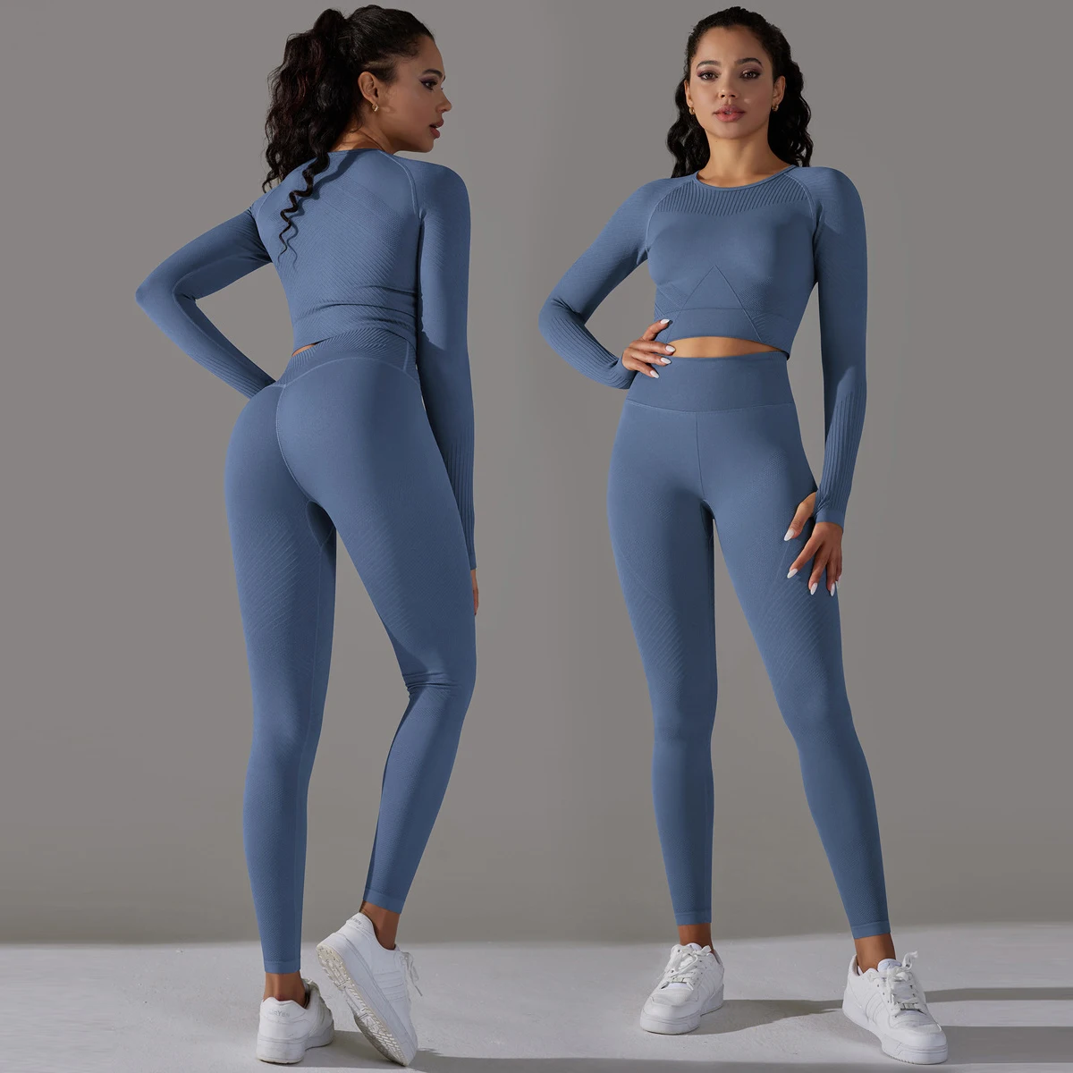 اشتر مجموعة تمارين رياضية سلسة بنقوش خريفية 2024، قمصان بأكمام طويلة مخصصة، بنطال ضيق، بدلة يوغا، صالة ألعاب رياضية، لياقة بدنية، ملابس رياضية من منتجات الملابس والاكسسوارات من مصنع الصين مباشرة عبر الرابط