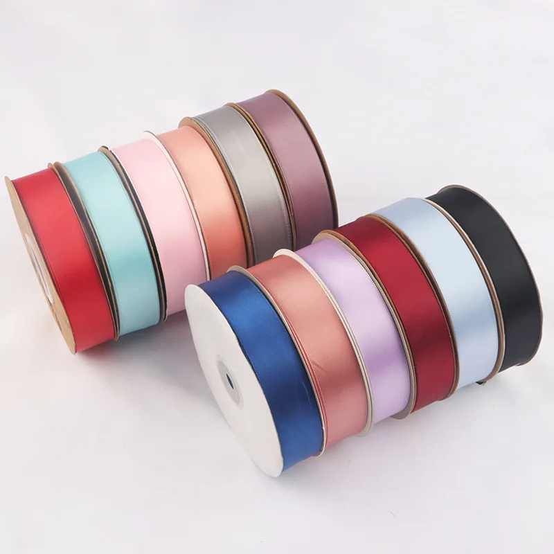 You are currently viewing مخزون جاهز للشحن 196 لونًا 50Y 100Y شريط بوليستر ساتان مزدوج الوجه لتغليف الهدايا