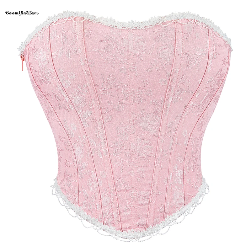 اشتر مشد دانتيل نسائي من Boned Korsett مطرز بالزهور مع خصر تدريبي وصدرية Y2K بسحاب بدون حمالات وقميص قصير من منتجات الملابس والاكسسوارات من مصنع الصين مباشرة عبر الرابط
