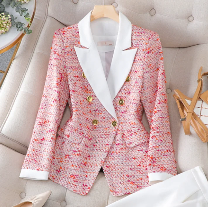 اشتر معطف بدلة منقوش بألف طائر باللون الوردي مقاس S-4XL للنساء، بدلة أنيقة عالية الجودة للربيع والخريف من منتجات الملابس والاكسسوارات من مصنع الصين مباشرة عبر الرابط