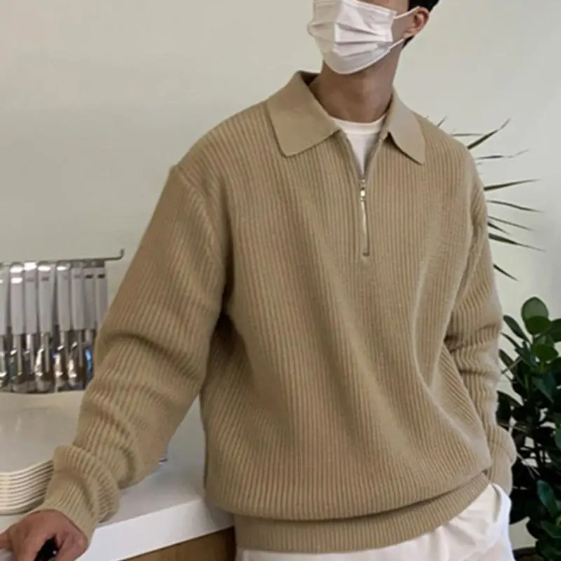اشتر م-3XL سترة محبوكة بلون سادة من النسخة الكورية، سترة عصرية بسحاب، بلوزات رجالية كاجوال بأكمام طويلة من منتجات الملابس والاكسسوارات من مصنع الصين مباشرة عبر الرابط