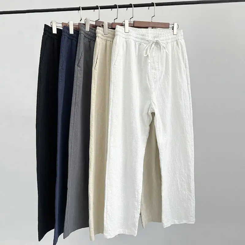 اشتر م-4XL بنطلون صيفي من الكتان عالي الجودة للرجال بنطلون رجالي رقيق من القطن والكتان بنطلون كاجوال مستقيم برباط من منتجات الملابس والاكسسوارات من مصنع الصين مباشرة عبر الرابط