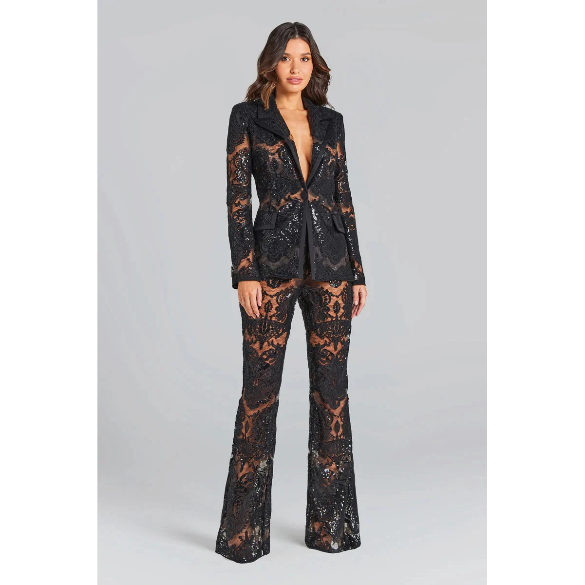 اشتر A8437 مصنع تصنيع بدلات نسائية سوداء مكونة من قطعتين بدلات نسائية كبيرة الحجم مطرزة بقطعتين من منتجات الملابس والاكسسوارات من مصنع الصين مباشرة عبر الرابط