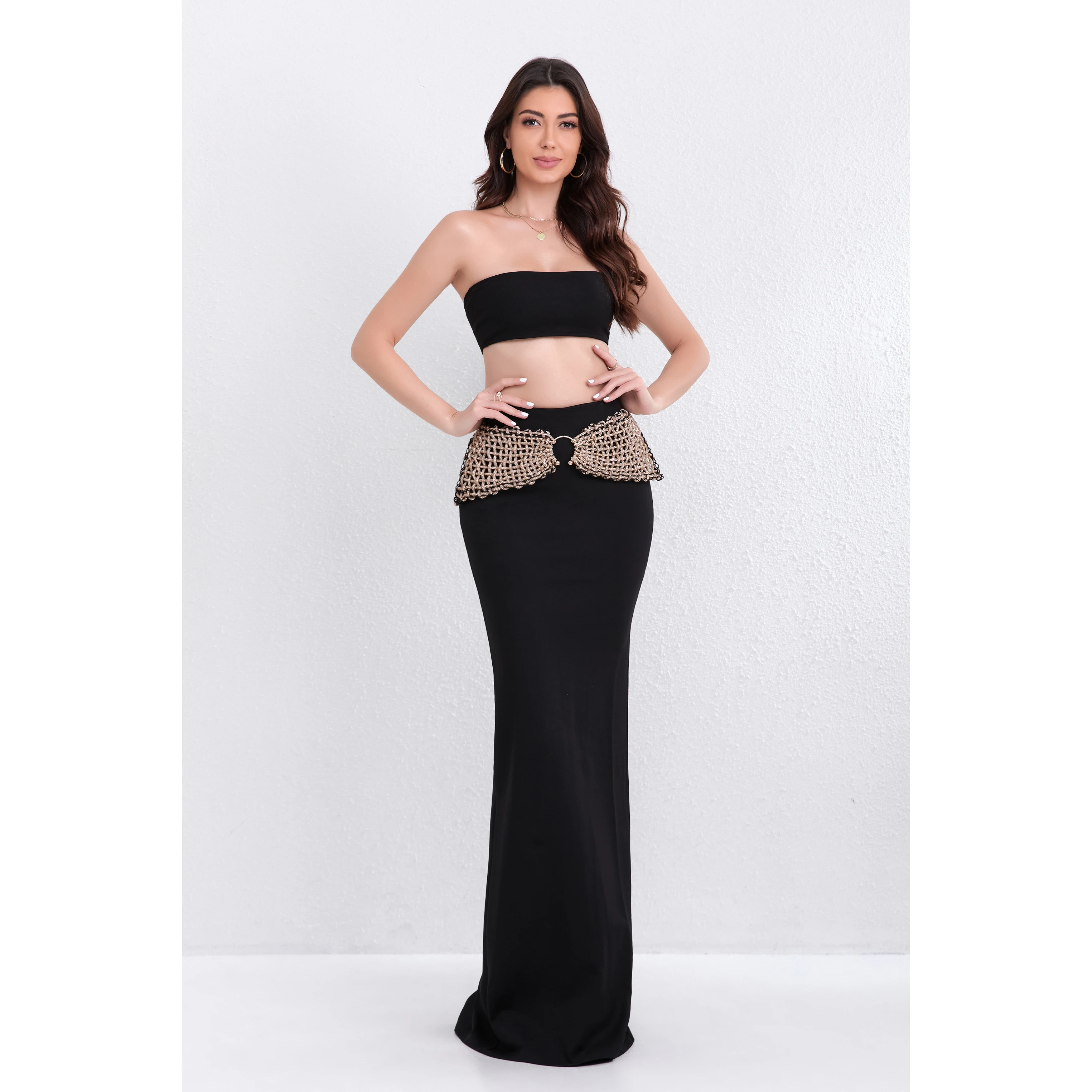 اشتر A9309 بدلة تنورة طويلة نسائية جاهزة للشحن، قمصان قصيرة سوداء، بدلات نسائية من قطعتين من منتجات الملابس والاكسسوارات من مصنع الصين مباشرة عبر الرابط