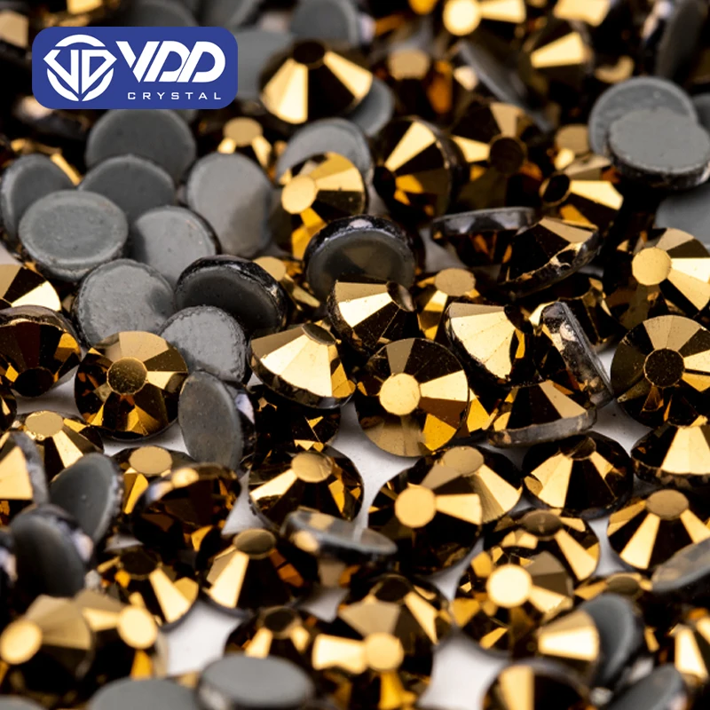 VDD 067 Aurum زجاج عالي الجودة مثبت بالحرارة مرصع بأحجار الراين الكريستالية المسطحة الظهر لتزيين الملابس بنفسك فستان الزفاف